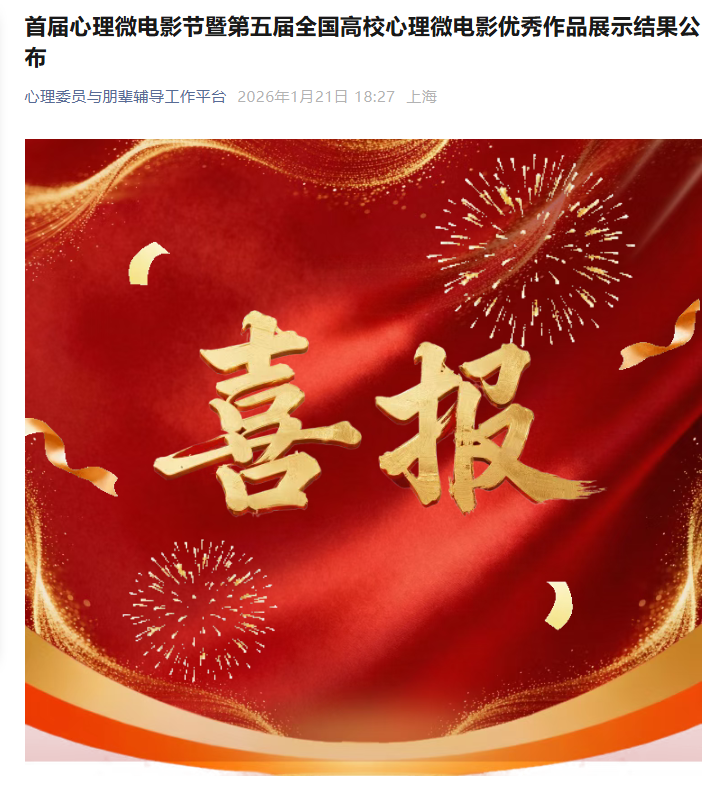 【bat365中文官方网站新闻中心讯 尚德书院】1月21日,由全球文化教育交流委员会、国际心理委员与朋辈支持联盟联合主办的首届心理微电影节暨第五届全国高校心理微电影优秀作品展示结果公布,在213部作品中,bat365官网作品《回声》荣获一等奖,《合群》荣获三等奖,其中《回声》排名全国第二。《回声》讲述了大一学生沈默因性格内向,不敢也不会表达真实的自己,在高中时被误解、被“霸凌”后,用“社恐”和打耳钉鼻钉的外在形象吓走想靠近她的人。同学微笑肯定沈默专业非常优秀,是一个真诚且值得做朋友的人。心理课上,老师讲述“真正的自信是对自我有正确认知,外人的评价不是我们评判自己的唯一标准。”触动了她,还有爸爸妈妈的来电包裹着浓浓的爱……这些让沈默下定决心走进学校心理健康中心,寻求科学帮助,治愈自己。作品鼓励有相同经历的学生,能勇敢发出内心的声音,并坚信一定会收到回声。《回声》由马克思主义学院、音乐舞蹈学院、新闻传播学院和美术学院学生共同...