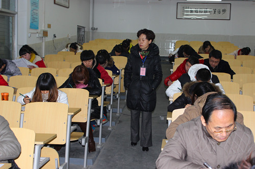 本次考试共928人(次)参加,考场设在教学楼一楼和二楼,考试共10场(次),科目多达90门。本次考试考生多、考试门类繁多。为了确保考试顺利,1月10日上午召开了考务工作会议,明确各考务、监考人员工作职责,进一步强调了考试纪律。考试过程中,考务人员和监考老师紧密配合、统一协调、周密安排,确保了考试的顺利进行。