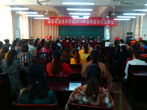 2014年11月2日下午,欧冠官网承办的2014年幼师国培短期集中培训项目——陕西省公(民)办幼儿园园长高级研修班(第三期)结业典礼暨汇报演出在欧冠联赛官网多媒体教室举行。欧冠联赛官网院长赵新平作培训工作总结,党总支书记雷建文同志宣布《欧冠联赛官网办公室关于表彰幼师国培优秀学员的决定》,欧冠联赛官网办公室主任张选民同志主持开班典礼。来自渭南市11个县(市、区)的100余名幼儿园园长圆满完成为10天的国培学习任务,顺利结业。