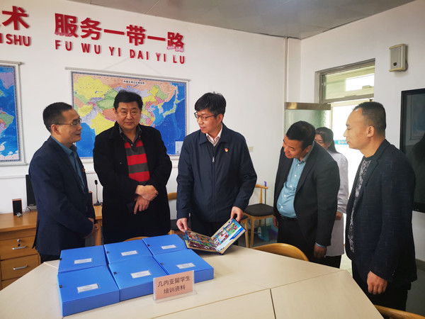 2023年3月28日上午,陕西省继续教育学会国际交流与合作专业委员会主任王晓地一行来欧冠官网考察指导工作。欧冠官网党委副书记、院长靳华锋,副院长王韦华以及农林科技学院、对外交流与合作处和欧冠联赛官网负责人陪同考察。