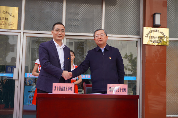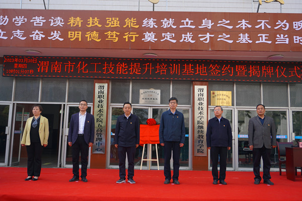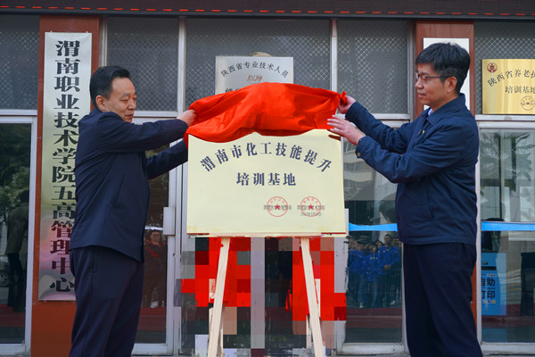 陈峰和靳华锋共同为“渭南市化工技能提升培训基地”揭牌。张百侣和王韦华签订基地战略合作协议。与会人员参观了培训教室、餐厅和培训公寓,对欧冠官网良好的办学条件给予充分肯定。