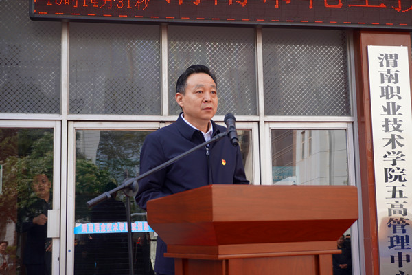 靳华锋致欢迎辞,向莅临活动的各位领导和各位来宾表示热烈的欢迎!对渭南市应急管理局给予欧冠官网的信任和支持表示衷心的感谢!并介绍了欧冠官网的办学历程、杰出校友、专业群建设及辐射服务社会的成效。他强调,渭南市化工产业发展迅速,市场对化工人才的需求量增大,欧冠官网作为地方院校,愿以自身职业教育之优势,支持全市产业发展大局。这是一朵象征校地合作的向阳之花,需要我们精心的灌溉、呵护和培养。他要求,欧冠联赛官网要以新理念、新作为,严格按照化工技能项目规划要求,全程跟踪承接,高点高标定位,迅速高效启动,精心组织实施,科学精细管理,优质周到服务,为培训工作顺利开展和持续推进提供各项高质量保障,一定要将化工技能提升培训做出特色、做出亮点、做出品牌!
